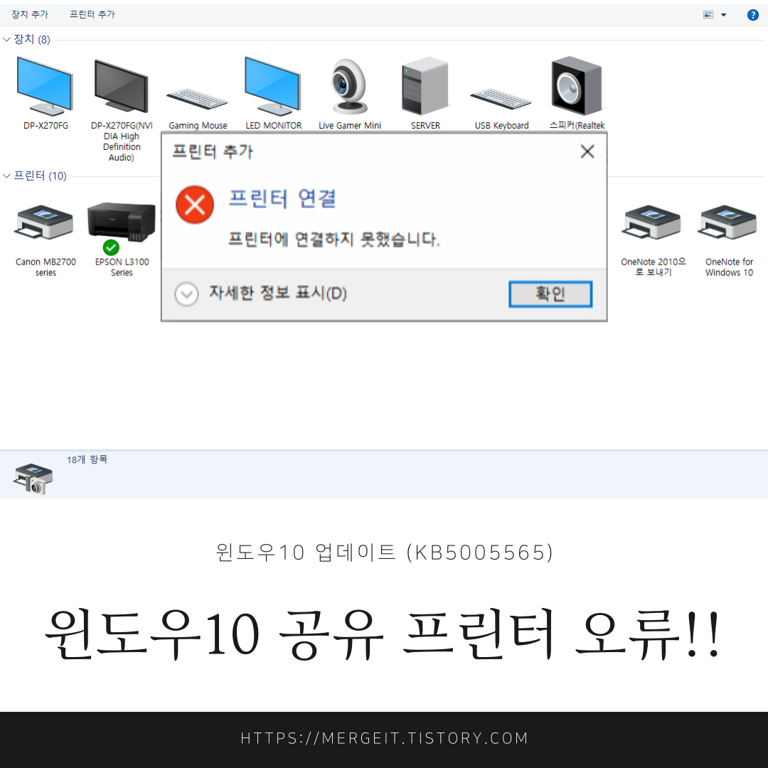 공유 프린터 출력 및 연결 불가 증상