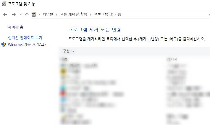 "프로그램 및 기능" 클릭합니다